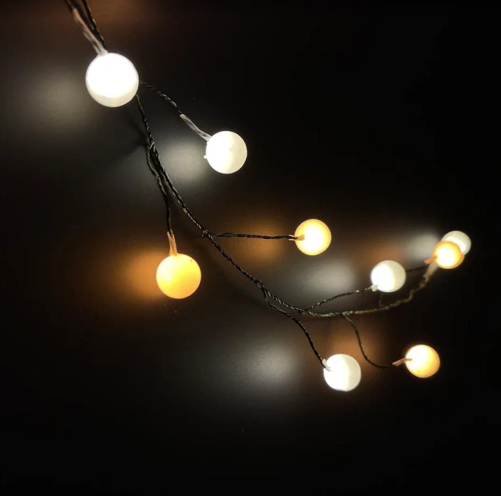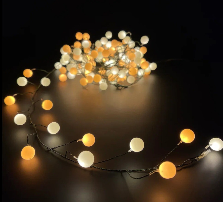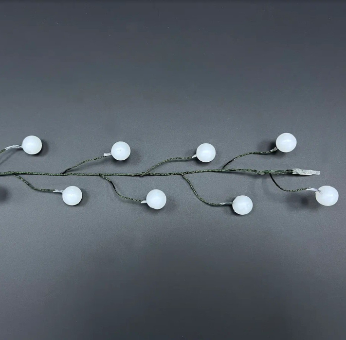 Декор Гирлянда кластер-ягодки на зеленом проводе теплый белый свет