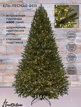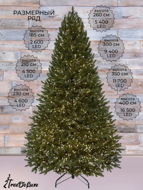 Ель TreeDeLuxe "Лесная фея" 100% литая 260 см 5400 ламп зеленая