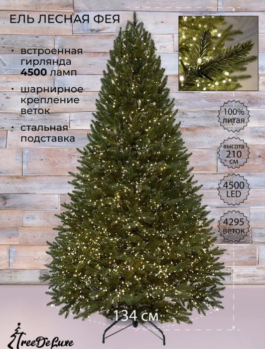 Ель TreeDeLuxe "Лесная фея" 100% литая 400 см 16500 ламп зеленая