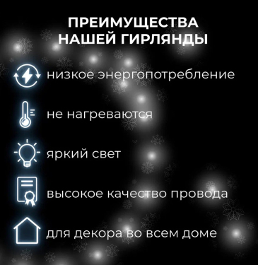 Гирлянда LED Снежинки на батарейках, холодный свет