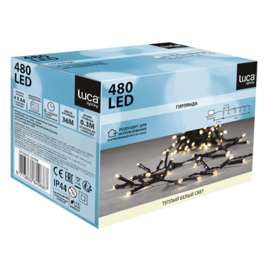 Гирлянда Luca Lighting теплый белый свет на батарейках (480 ламп, длина гирлянды 3600 см), таймер на откл. 6/18