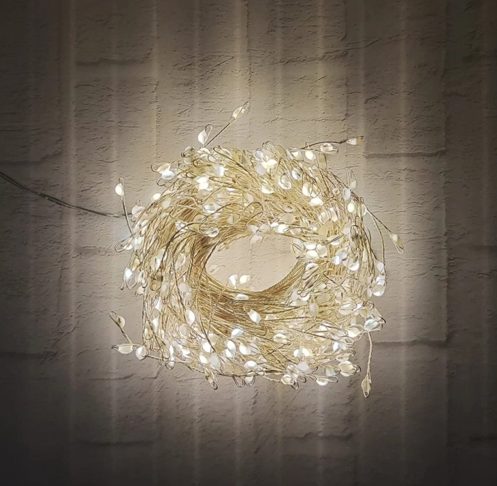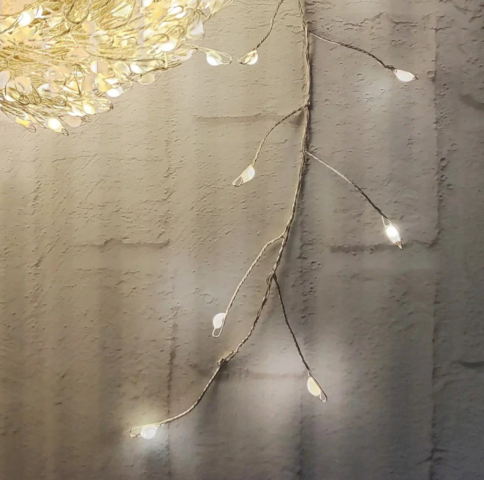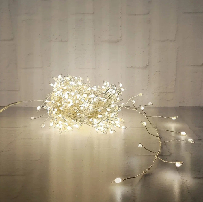 Гирлянда Snake Light Капли макро на серебряном проводе теплый белый свет 600 ламп, 8 функций, 1500 см