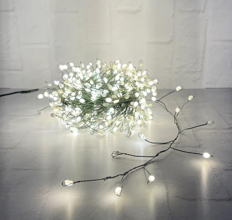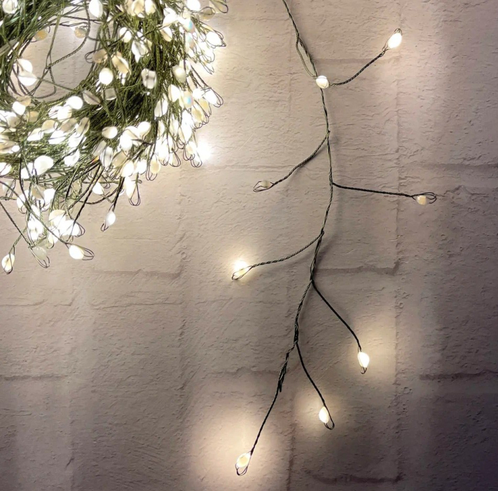 Гирлянда Snake Light Капли макро на зеленом проводе теплый белый свет 600 ламп, 8 функций, 1500 см