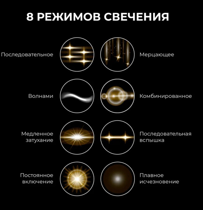 8 режимов свечения