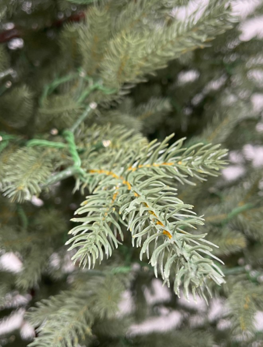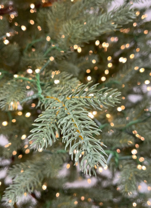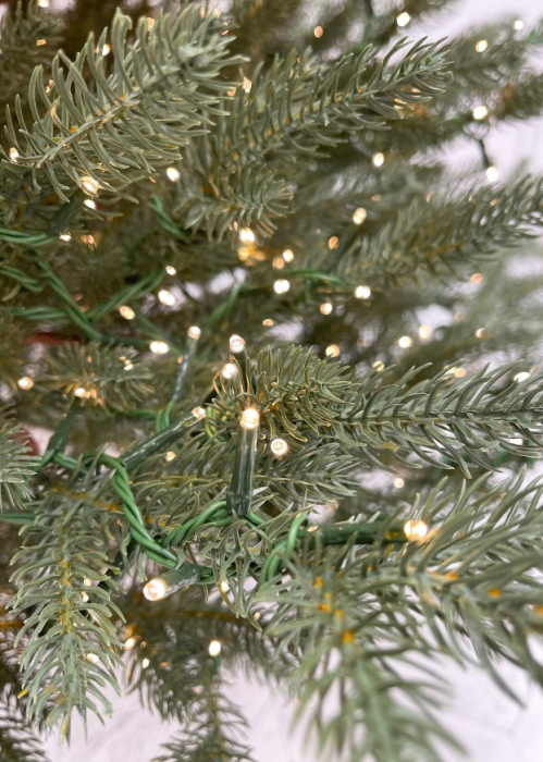 Встроенные LED-лампочки тёплого света равномерно распределены по всей кроне. Их множество создаёт эффект живого свечения, словно ель освещена мягким зимним солнцем. Свет не раздражает глаза, а уютно мерцает, наполняя помещение теплом и праздничной атмосферой.